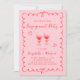Trendy, convite retrógrado, rosa e festa de noivado vermelha, com uma estrutura ondulada adornada com arcos coquetes, ilustrações desenhadas à mão branca de corações e copos margarita, e "Festa de noivado" e os nomes da noiva e noiva em uma escrita divertida e brincalhona.