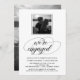Este elegante e moderno convite para a festa de noivado apresenta a tipografia ornamentado negra num fundo branco, com duas fotografias escolhidas na frente e no verso.