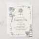 Celebre o seu amor com este Convite de Festa de noivado Desenhado da Mão Branca! Apresentando elementos divertidos desenhados à mão como um coquetel, copos de champanhe, monograma, estrutura de escrivura, bola de disco e escrita à mão, este convite traz uma estética francesa vintage com uma reviravolta moderna e moderna. Perfeito para festas retrô, boho ou de inspiração francesa, é totalmente personalizável, acrescentando um toque único e na moda à sua celebração especial.