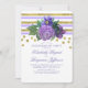 Convites Festa de noivado Dourada de Stripes e Flores Roxas