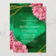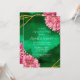 Uma ilustração delicada de aquarela, com uma estrutura geométrica dourada contra um fundo verde esmeralda. O quadro é adornado com crisântemos rosa-quente vibrantes colocados ao longo das bordas externas. Todo o design tem textura aquosa macia, misturando elegância com um toque floral natural.