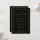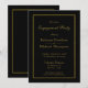 Um sofisticado convite minimalista à festa de noivado negra e dourada.