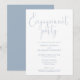 Este convite de festa de noivado elegante de script azul empoeirado pode ser personalizado com todas as suas informações especiais de evento. Projetado por Thisnotme©