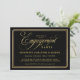 Celebre o feliz casal com este elegante convite para Festa de noivado de caligrafia em ouro. Um belo tipo de roteiro de caligrafia soletra a palavra "Noivado" num estilo decorativo adorável. O fundo negro é chic e moderno contrastando com o texto dourado. Personalize o modelo de texto com os detalhes do evento.
