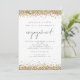 Festa de noivado Elegante Dourada de Script Glitter. As bordas de cintilação falsa em ouro de vidro estão no topo e no fundo e também no verso. O noivado é definido em um estilo moderno de escrita manual. Personalize facilmente o resto do texto para você.