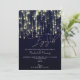 Este design de convite de festa de noivado minimalista apresenta um fundo cintilante de ouro azul marinho acabado com a elegante tipografia clássica da caligrafia. Uma festa de noivado personalizável moderna, mas elegante, faz com que esta seja uma escolha perfeita para convidar seus convidados a comemorar o anúncio do seu noivado.