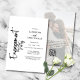A Elegante Photo Black and White Festa de noivado Invitation apresenta a foto do casal, bela caligrafia, tipografia moderna e é totalmente personalizável com seus nomes, detalhes de casamento e um código QR para seu site de casamento. A design formal e a formulação adicionam um toque de elegância à sua celebração do casamento. Este item coordena-se com o Elegante Black White Vertical Script Wedding Suite.