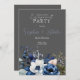 Apresentando nosso sofisticado e na moda, convite para festas de noivado florais, projetado para capturar perfeitamente o romance e o entusiasmo de sua próxima celebração. Este convite apresenta um fundo de cinza elegante com flores azuis, brancas e verdes delicadas, acentuadas por bordas azuis suaves. A maior parte do texto deste convite é impresso em branco nítido, criando um aspecto clássico e elegante. No entanto, os nomes dos casais são escritos em um roteiro azul-macio, que corresponde perfeitamente às bordas azuis das flores azuis escuras. Isso adiciona um toque de personalidade e romance ao design, fazer o convite perfeito para anunciar seu noivado. Nossa impressão de alta qualidade garante que todos os detalhes, desde o intrincado padrão floral até o texto do script, sejam capturados com precisão e clareza. Este convite não só é belo, como também reflete o amor e a alegria do casal feliz, convidando seus hóspedes a se juntarem à celebração do seu noivado. Esse convite versátil pode se adequar a qualquer tema festa de noivado, de um cocktail formal a um churrasco relaxado de quintal. Peça seu convite hoje e deixe-nos ajudá-lo a tornar seu evento especial ainda mais memorável. Seus hóspedes ficarão animados por receber este convite maravilhoso pelo correio, e vocês ficarão felizes em vê-los todos se reunirem para celebrar seu amor.