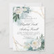 Mola aquosa, moldura geométrica de ouro e convites para festa de noivado de peões brancos
