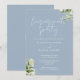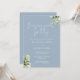 Este convite de festa de noivado floral em azul poeirento elegante pode ser personalizado com suas informações em tipografia sofisticada com suas iniciais monogramadas no verso. Criado por Thisisnotme©