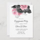 Convites Festa de noivado Floral Preto-Rosa de Luxo