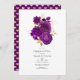 Convite personalizável de festa de noivado floral roxo e dourado para casamento, adaptável aos detalhes do seu evento.