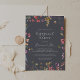 Este clássico convite à festa de noivado floral azul selvagem é perfeito para um noivado rústico. A design apresenta flores silvestres brancas, amarelas, roxas e brancas com folhagem em fundo de rosa e aquarela verde.