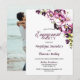 Convide seus amigos e entes queridos para a sua festa de noivado com este convite para festas de noivado florais rosa rústico que apresenta uma imagem do casal feliz no lado oposto.