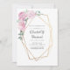 O convite para festa de noivado floral de casamento no estilo pastel chic com estrutura geométrica dourada.