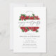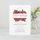 Trendy rustic christmas convite para festa de noivado de casamento com moldura geométrica dourada e tipografia de escrita manual com sinos de trenó, flores de poinsettia, sagrada, concha e pinheiro.