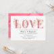 Letras de aquarela elegantes e românticas cor-de-rosa soletrando amor. Corações vermelhos e formas geométricas douradas flutuam ao seu redor. A parte de trás do convite à festa de noivado é uma lavagem de aquarela suave, vermelha e rosa. Inclua os detalhes da sua festa de noivado abaixo. Este convite faz parte da coleção Coração Namorados. Contém muitos elementos de coordenação para a sua festa de noivado. Você deve ver um link para ele nesta página. Se você não vir o link ou precisar de ajuda com um item, entre em contato comigo.