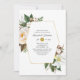Convites Festa de noivado Geométrica Floral Dourada