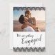 Um convite formal de festa de noivado com padrão geométrico a preto e branco simples. Personalize com seus próprios detalhes e uma foto especial do casal feliz. Um simples convite festa de noivado. Design de design e layout de padrão exclusivo por Sarah Trett para www.mylittleeden.com