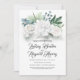 Eucalipto botânico verde e peônia branca floresce convites à festa de noivado românticos