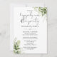 Com delicada folhagem floral, este convite de casamento para uma festa Chic Happily Ever After pode ser personalizado com as informações do seu evento especial e votos de casamento no verso, definidos em uma tipografia moderna e elegante. Perfeito para qualquer celebração de casamento, incluindo renovação de votos, recepções de primeiro aniversário, festas pós-casamento secreto ou teve que ter um casamento minimalista e agora está pronto para festejar novamente. Projetado por Thisisnotme