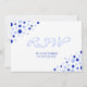 Um convite para festa de noivado informal, divertido, de 5 x 7" em na moda azul-escuro, azul-claro e branco, com um padrão especial giro em um fundo branco. As cores do texto e do plano de fundo podem ser alteradas se você preferir, e todo o texto é editável. Este design de convite de noivado contemporâneo também está disponível em outras cores em minha loja, juntamente com outros produtos de casamento.