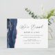 um simples design de script e rosa dourado e marinho azul agate. Você pode personalizar o texto, a imagem e os detalhes de cor neste modelo de convite de festa de noivado.