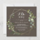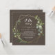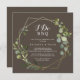 Este convite de festa de noivado marrom-dourado "Eu faço" é perfeito para uma simples festa de noivado, janto de ensaio, chá de casais, após festa ou qualquer evento de casamento. A design apresenta lindas folhas verdes pintadas manualmente em um fundo castanho, enfeitando um quadro geométrico dourado.