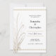 Convite simples e elegante para a festa de noivado com erva selvagem natural e rabisco moderno, que é traçado na fronteira. O texto do convite é totalmente editável e escrito numa mistura de tipografia serif regular e itálica. Design sutil, estilo boho em paleta de cor neutra de natural, café, preto e branco.