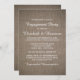 Estes convites são perfeitos para qualquer noiva e noiva planejando uma festa de noivado romântica ou celebração chá. O design apresenta um fundo de efeito de burlap rustic com uma redação branca elegante. O design simples pode ser personalizado para se adequar ao seu evento especial e será o anúncio perfeito para qualquer festa temática rústica, incluindo chás de panela, noivados, casamentos, aniversários e muito mais.