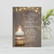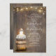 O convite à festa de noivado de madeiras rústicas florais inclui o barril de vinho, as flores do hálito do bebê, o fio de luzes e a lâmpada de colheita - lanterna
