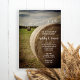 Convide convidados para uma celebração honrando a noiva e o noivo para estarem com o encantador convite à Festa de noivado Rustic Hay Bales Ranch. Esta festa de noivado personalizada casual do tema country apresenta uma fotografia cênica de fazenda de um prado verde cheio de fardos redondos de feno num dia do céu azul com nuvens brancas dispersas. Inpo perfeito ou ideia para um evento informal de um celeiro. Disponível como um convite impresso para envio por correio ou como um download digital para fácil compartilhamento digital online.