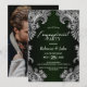 Convide seus amigos e entes queridos para sua festa de noivado com este elegante convite verde de renda branca para se juntar a vocês dois para celebrar suas boas notícias. Uma imagem do casal feliz aparece no verso do convite.