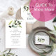 Uma simples e botânica escolha para anunciar sua festa de noivado. Este convite apresenta ramos originais de oliveiras de cor aquosa com detalhes em cinzas de carvão sobre um fundo branco nítido. A placa se reverte para uma cor verde de sábio complementar. Use os campos modelo para personalizar com seus nomes e data do evento. As cores são editáveis clicando no botão "Editar usando a ferramenta Design". Solicite placas impressas ou faça o download de um posto sem papel. Uma escolha elegante para o tema rústico.