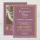 Um convite de festa de noivado vitoriano elegante, com um design clássico, mas elegante, com um ornamento de intrincadas espirais de videira no estilo vitoriano. Seus detalhes aparecem em uma mistura de rotações românticas e fontes clássicas de serifa cercadas por duas fronteiras. O espaço para uma foto está incluso no verso - perfeito para exibir uma foto favorita do casal. A cor da fonte e do plano de fundo pode ser alterada para qualquer cor desejada clicando no botão personalizar. Um design limpo e clássico perfeito para um casal que quer estilo tradicional com um toque moderno.