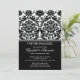 O anúncio elegante do nosso noivado apresenta um belo Damasco preto e branco com uma banda de Cinza de carvão. Perfeito para um convite de festa de noivado ou um anúncio de noivado! Apenas personalize com suas informações e você está pronto para ir! Os itens correspondentes incluem convite para chás de panela, cartões de agradecimento, selos e muito mais em nossa loja!