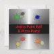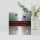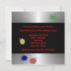 Convite de festa de aniversário com respingos de tinta colorida e meninos de metal, paint ball e pizza.