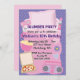 Este Convite de festas Slumber personalizável apresenta um saco-cama cor-de-rosa e travesseiros, pizza, pipoca e uma caixa de expansão para música para uma festa de sono de excelente.