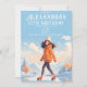 Festa de Patinação no Gelo de Inverno. Menina de cabelo castanho na pista de gelo ao ar livre entre as montanhas. Menina de patinação artística na pista ao ar livre. Convite de aniversário.