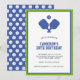 Um convite super divertido para a sua próxima festa de piquete. Design apresenta 2 pás de picleball azul cruzadas e uma bola. Adicione facilmente todos os detalhes personalizados da sua festa e mude as cores também! Excelente para festa de aniversário de picleball de um adulto ou criança, reunião de fim de semana de picleball, fuga, festa de pileball, torneio ou diversão cotidiana. Pickleball - o melhor esporte de sempre!!