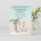 Este convite de festas personalizado apresenta um tema de aniversário de piratas fofo. Uma imagem de um navio pirata é ilustrada no fundo, navegando perto de uma ilha com um tesouro e ouro. Uma pequena gaivota é fotografada em pé na ilha, e uma mensagem em uma garrafa é vista flutuando no mar. O plano de fundo apresenta um sunset majestoso estilo gradiente.