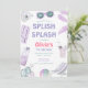 Faça um salto com este adorável convite de aniversário da piscina "Splish Splash"! Apresentando ilustrações encantadoras de aquarela de óculos de sol, flip-flops, toalhas, uma cadeira de salão, bebidas refrescantes, e mais em tons suaves de roxo, rosa e verde-menta, este convite é perfeito para uma festa de verão divertida e colorida. Facilmente personalizável com os detalhes de sua festa, é a maneira ideal de convidar amigos e familiares para se juntarem à diversão de aniversário.