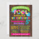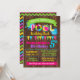 Piscina aniversário de convite, cor-de-rosa quente, roxo, lacrimejo, amarelo e limão, com um fundo de madeira falso adequado para qualquer idade. Adicione seu próprio texto ao modelo, para mais personalização (cor da fonte, estilo da fonte, plano de fundo), clique em personalizar, role para baixo e clique no link "clique para personalizar ainda mais":