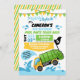 Anuncie seu Aniversário com este Convite à Bacia de Lixo do Partido Splash Splash Piscina. O Aqua Azul Cibano, design verde e amarelo e o ventilador do caminhão de lixo irão adorar. Com os seus detalhes personalizados, os convites fazem um salto.