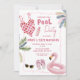 Convite de Aniversário para Festa de Piscina, Ilustração Cômica Convite de Aniversário Rosa, Emissível Convite de Festa de Piscina Exterior
