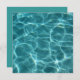 Foto de luz tocando no fundo de uma piscina de natação. A cor predominante é aqua mais que azul. Um cartão plano de vazio para criar seu próprio convite para festa de aniversário de piscina de natação.