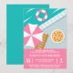 Convites Festa de Piscina de Pizza Piscina Rosa Moderno