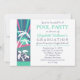 Olhar para a cena da praia parece Festa de formatura. Apresenta uma cena retrógrada de praia por pôr do sol em azul, verde e rosa com palmeiras e tartaruga. Excelente para festas de piscina e praia. Design por Holiday Hearts Design (direitos reservados).