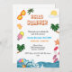 Esta design de verão tem uma fronteira de temas de verão e um tipo de script moderno para os detalhes de sua festa. Óculos de sol, sandálias, sorvete, sol, plantas tropicais, flores, guarda-chuva, chinelos, bolas de praia, e mais podem ser encontrados ao longo da fronteira! Para editar o texto, clique no botão "Personalizar este modelo".