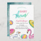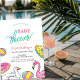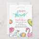 Um convite de chá de fraldas bonito traz uma festa de piscina. Esses convites para chuveiros de bebês são facilmente personalizados para seu evento simplesmente adicionando seus detalhes.
